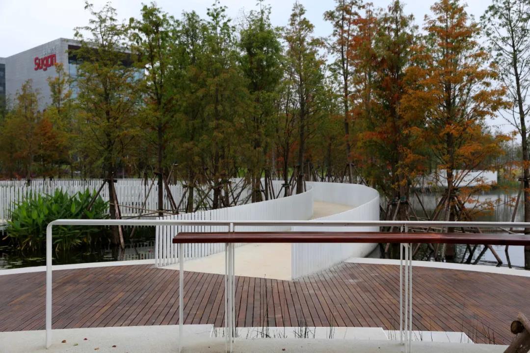 天府新區(qū)不僅僅對(duì)湖心島做了地形的處理,同時(shí)根據(jù)湖心島的高程、與水的關(guān)系配置了植物群落以及蜿蜒的弧形岸線等設(shè)計(jì),使得湖心島的生物越來(lái)越豐富。